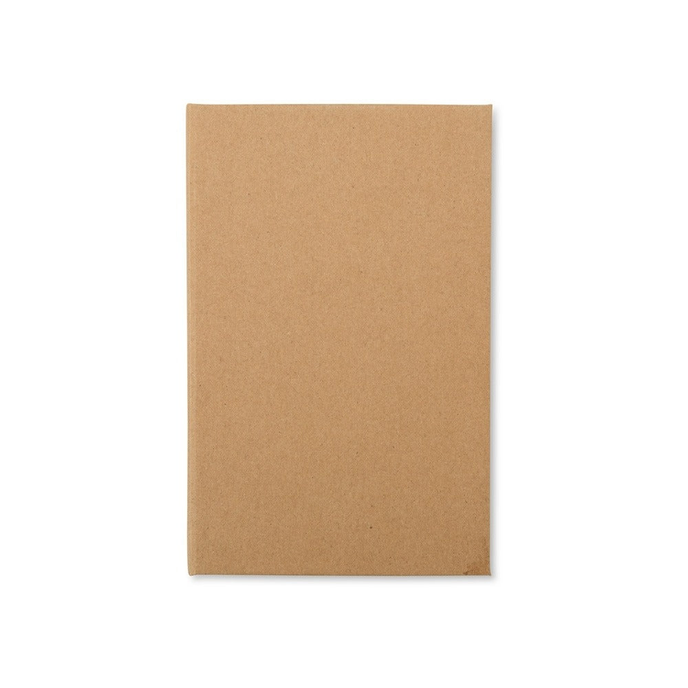 Descrição:  Tudo em seu lugar, prontinho para as anotações! Nosso Bloco de Anotações Ecológico é perfeito para manter a organização enquanto você registra ideias. Feito de material kraft, ele vem com 100 folhas brancas para anotações, 5 marcadores autoadesivos coloridos para destacar o que é importante, 7 clipes guardados em uma givetinha prática e uma mini caneta de papelão com carga esferográfica azul. E ainda conta com espaço para guardar a caneta e dois suportes porta-caneta, garantindo praticidade no dia a dia. Este bloco é tudo o que seu cliente precisa para dias repletos de anotações.