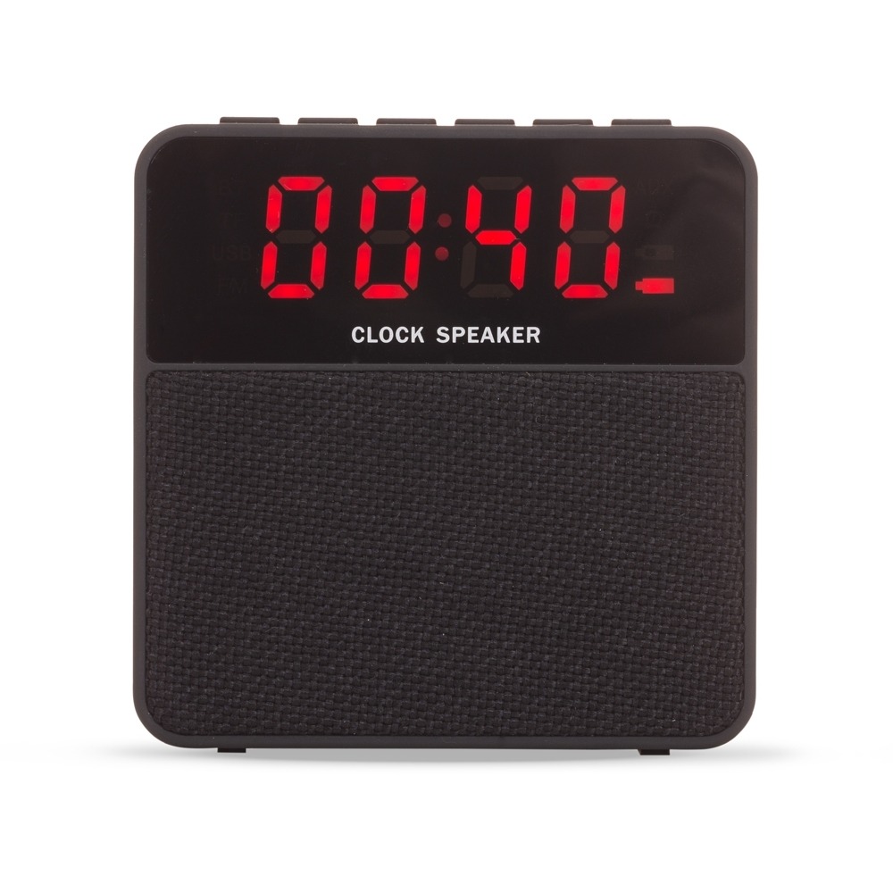 Conversar no WhatsappDescrição: Caixa de som multimídia com construção em plástico, acabamento em tecido para proteção dos alto-falantes, display de LED e base com borrachas antideslizantes. Possui conexão Bluetooth 4.2 e painel de botões para controlar a reprodução de músicas a partir de aparelhos pareados, pen drives ou cartões microSD, por meio das entradas USB-A e TF, além de porta auxiliar P2 e botão para atender ligações. Conta ainda com a possibilidade a programar alarmes e acompanha cabo Micro-USB para carregamento do aparelho.