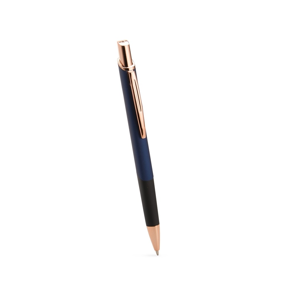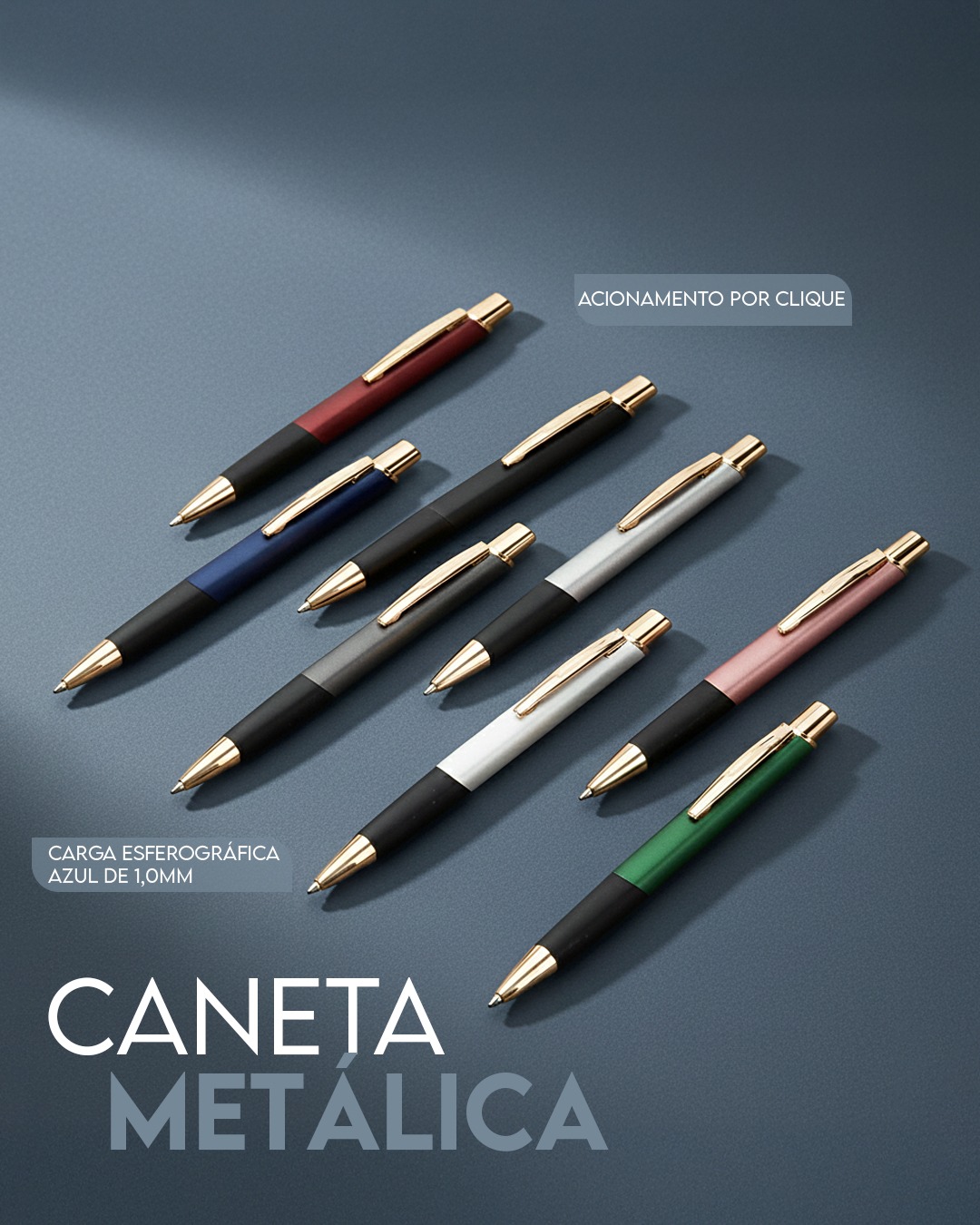Conversar no WhatsappDescrição: Caneta feita inteiramente em metal com acionamento por clique e carga esferográfica azul de 1,0mm.