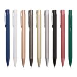 Conversar no WhatsappDescrição: Caneta metálica com ponta e clip em plástico. Possui acionamento por clique e carga esferográfica azul de 1.0mm.
