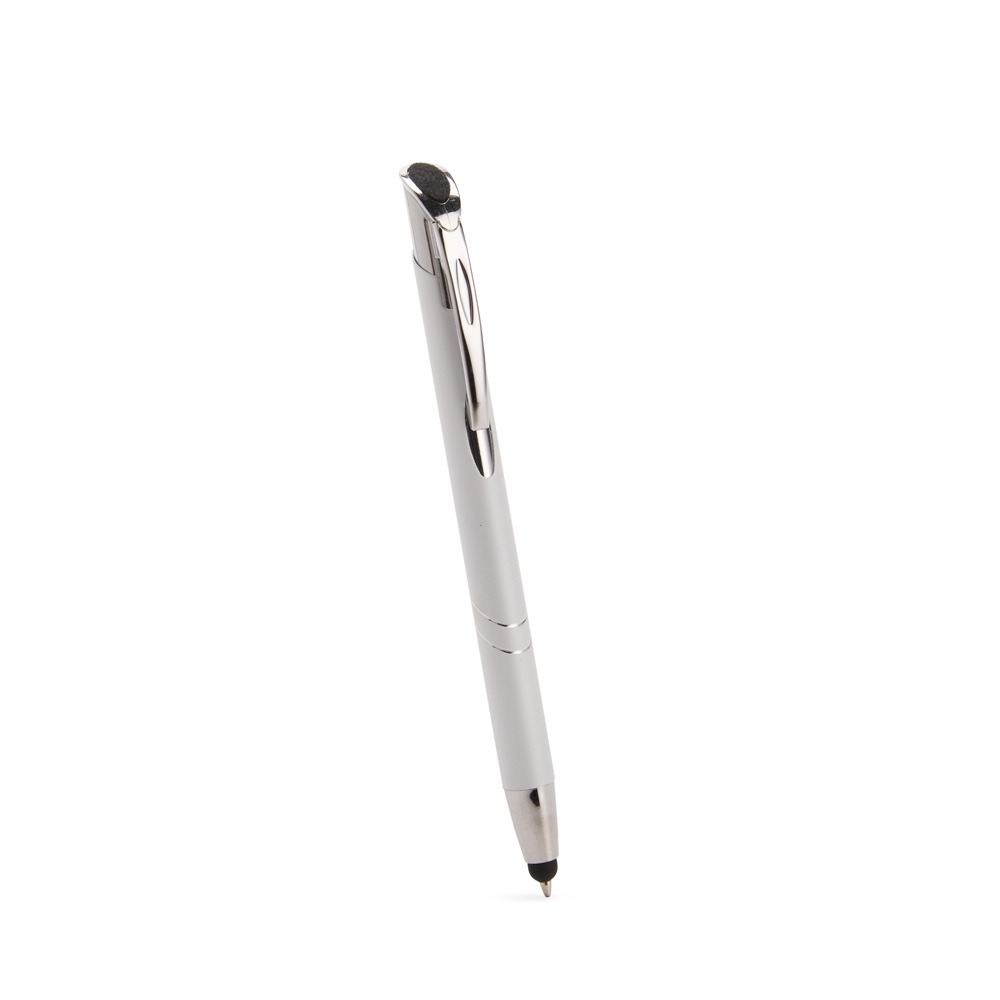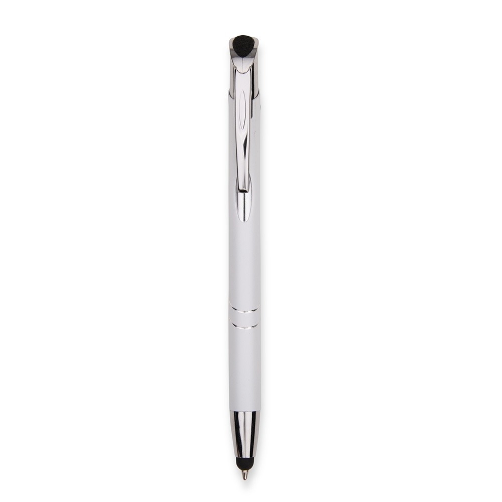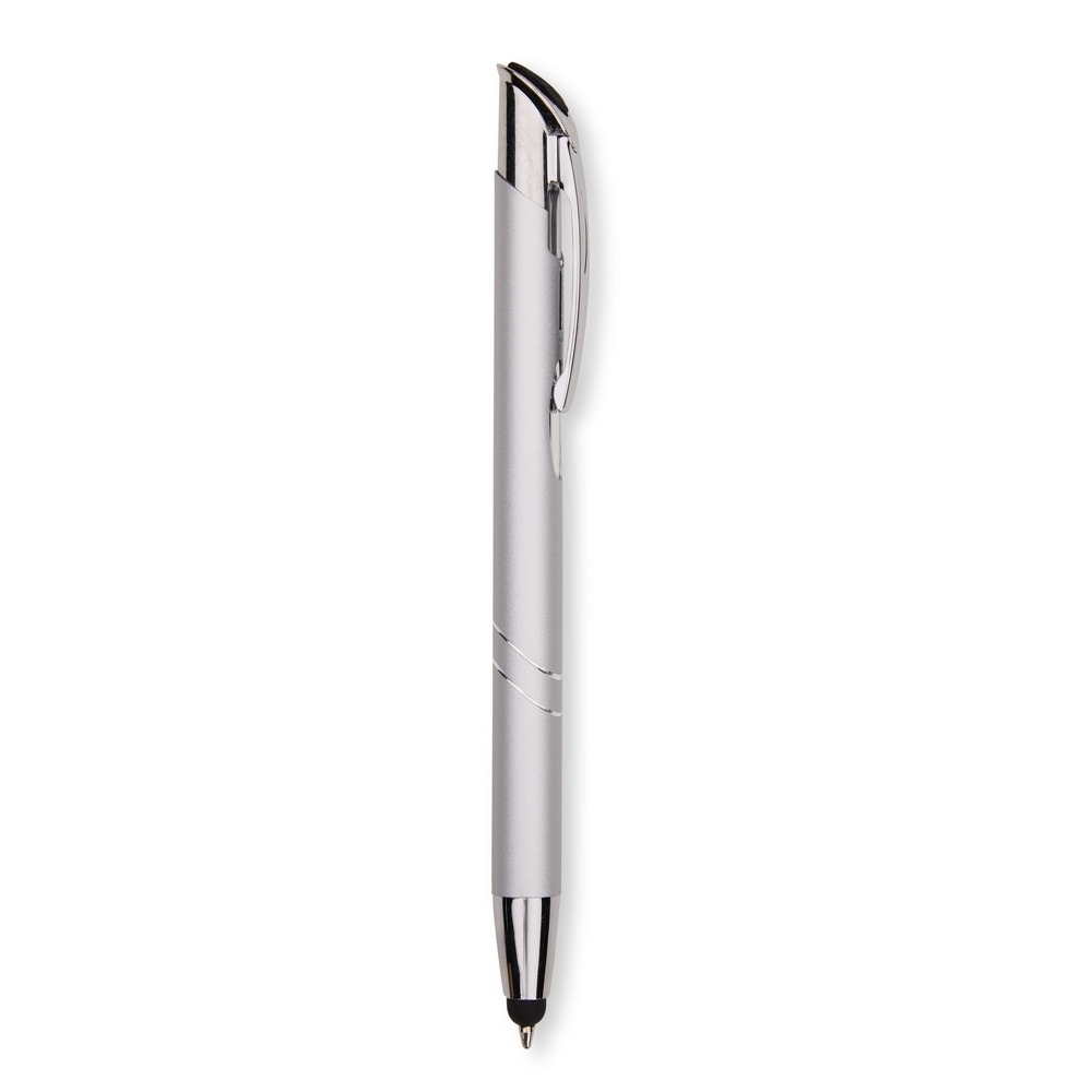 Conversar no WhatsappDescrição: Caneta metálica com acionamento por clique texturizado e carga esferográfica azul de 1,0 mm. Possui ponta com revestimento emborrachado para uso em telas sensíveis ao toque.