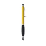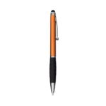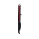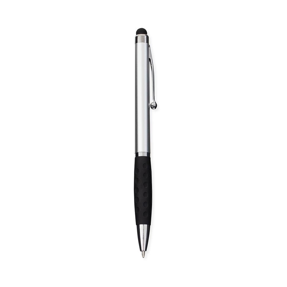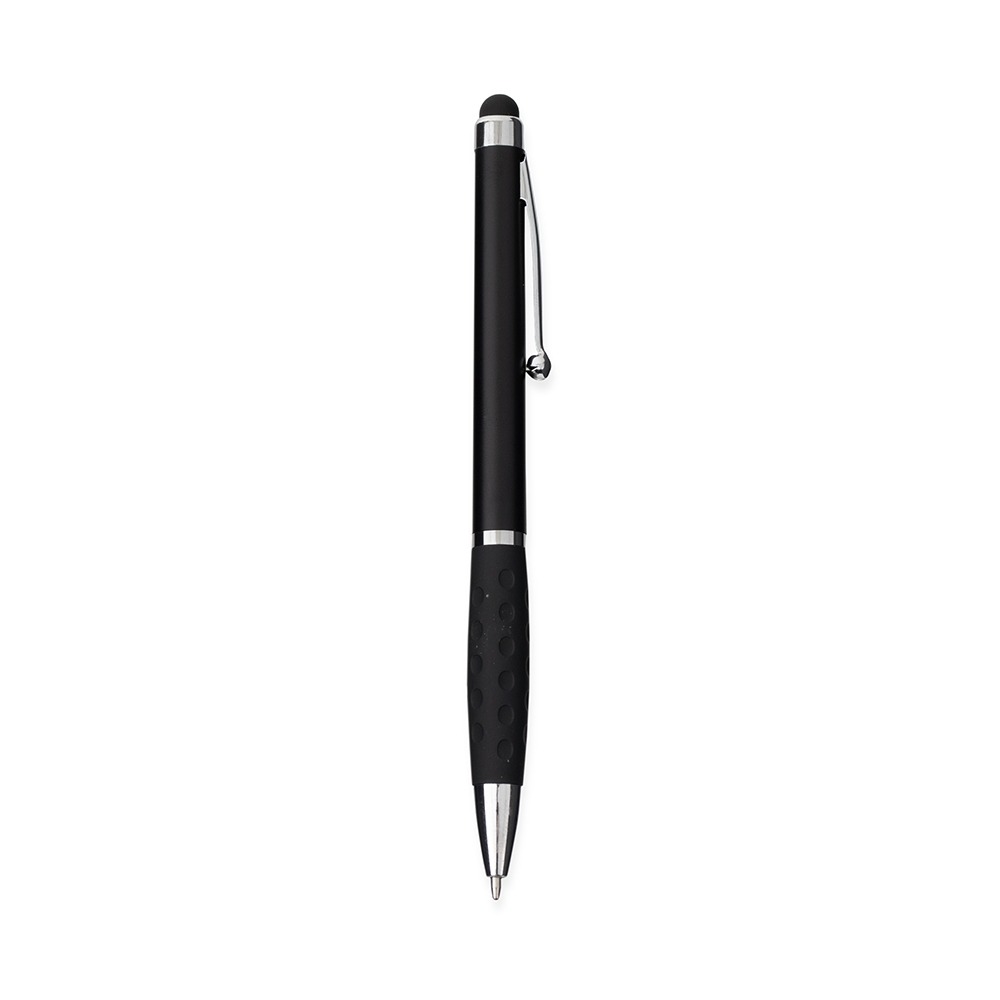Conversar no WhatsappDescrição: Caneta plástica com ponta, clip e pequenos detalhes em metal, além de detalhes ergonômicos na área próxima à tampa. Possui acionamento por rotação, carga esferográfica azul de 1.0mm e ponteira emborrachada para interação com dispositivos de telas sensíveis ao toque.
