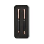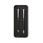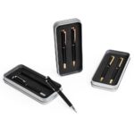 Conversar no WhatsappDescrição: Descubra nosso sofisticado kit de canetas esfero e roller em metal, perfeito para quem valoriza estilo e funcionalidade. Com acabamento fosco, a caneta esferográfica possui acionamento por rotação e carga azul de 1.0mm, garantindo uma escrita suave e precisa. A caneta roller com carga de 0.7mm, oferece um traço delicado e fluido. Acompanha um estojo de metal revestido em espuma, que protege e exibe suas canetas com elegância.