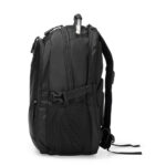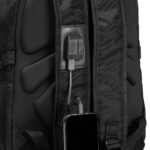 Descrição:  Mochila confeccionada em PVC Jacquard com mescla em seda, resistente à água, fechamento em zíper no compartimento principal e capacidade de até 23 litros. Possui uma placa metálica para personalização, três compartimentos frontais, dois bolsos laterais em tela de nylon e bolso traseiro para notebook de até 15,3 polegadas. Conta ainda com engates laterais externos, alça superior em plástico e silicone, alças acolchoadas, adaptadores USB e P2 e painel traseiro estofado. Acompanha capa protetora em tecido sintético.