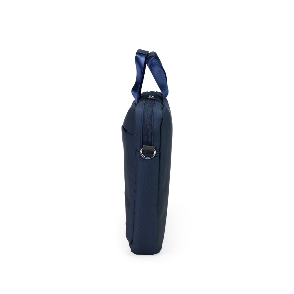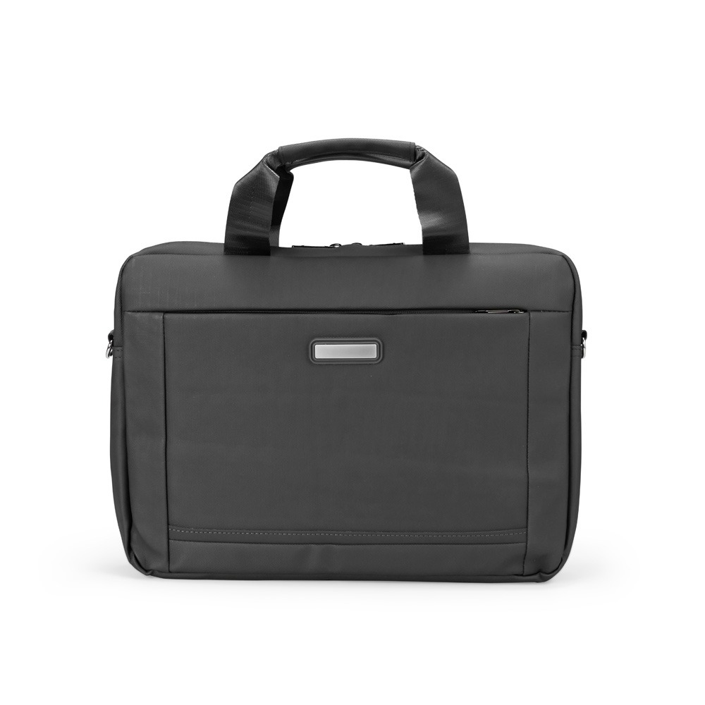 Conversar no WhatsappDescrição: Pasta para notebook confeccionada em couro sintético impermeável com fechamento em zíper e capacidade para aparelhos de até 15,6 polegadas. Possui dois compartimentos: o principal, com revestimento acolchoado, quatro bolsos abertos de tamanhos diferentes e duas divisórias para canetas; e o frontal, com plaquinha metálica fixa na parte externa. Conta ainda com duas alças de mão e um par de abas metálicas para alças removíveis. Acompanha alça de ombro ajustável.
