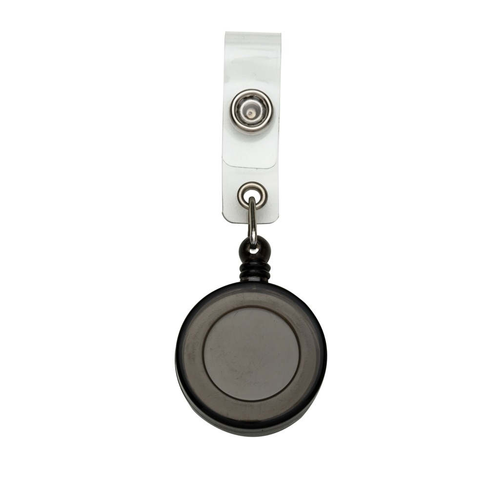 Descrição: Porta crachá retrátil plástico, cores leitosas e translúcidas. Roller clip possui sistema extensor em nylon que após puxar é recolhido automaticamente. Possui presilha metálica na parte traseira e alça plástica com botão.