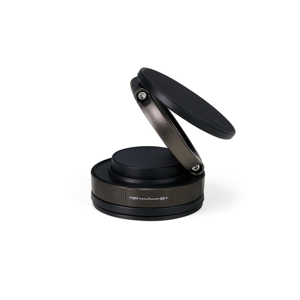 Descrição: Suporte magnético em plástico ABS com articulação em diferentes ângulos e rotação de 360 graus no próprio eixo. Possui superfície magnética para fixação de aparelhos na vertical ou horizontal, compatível com dispositivos magnéticos ou com o anel adaptador incluso. Conta com mecanismo giratório para pressão da ventosa em superfícies lisas. Acompanha anel magnético adesivo, placa plástica com adesivo, kit de lenços e chave Allen.